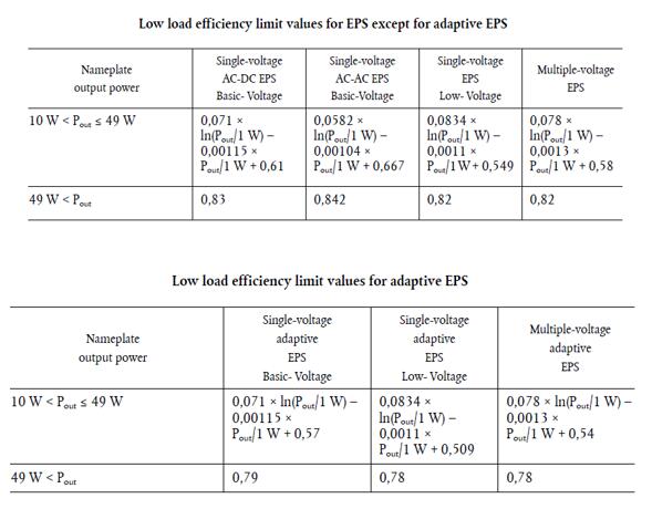 1)新法规建议提升带载模式的效率 — 考虑到不同负载 (尤其是 10% 低负载 情况) 的效率差异,为此法规新增了 “在10%负载下的最低效率” 要求。此为首次将低负载效率纳入强制标准。